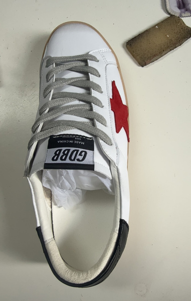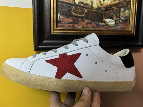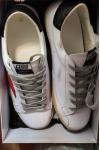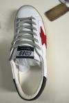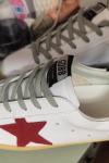◎Diese Schuhe mit weißem Obermaterial aus Leder verfügen über einen roten Wildlederstern und eine dunkelgrüne Fersenlasche aus Leder. Der eisgraue Wildledereinsatz auf der Rückseite und die grauen Schnürsenkel verleihen den Schuhen den letzten Schliff.