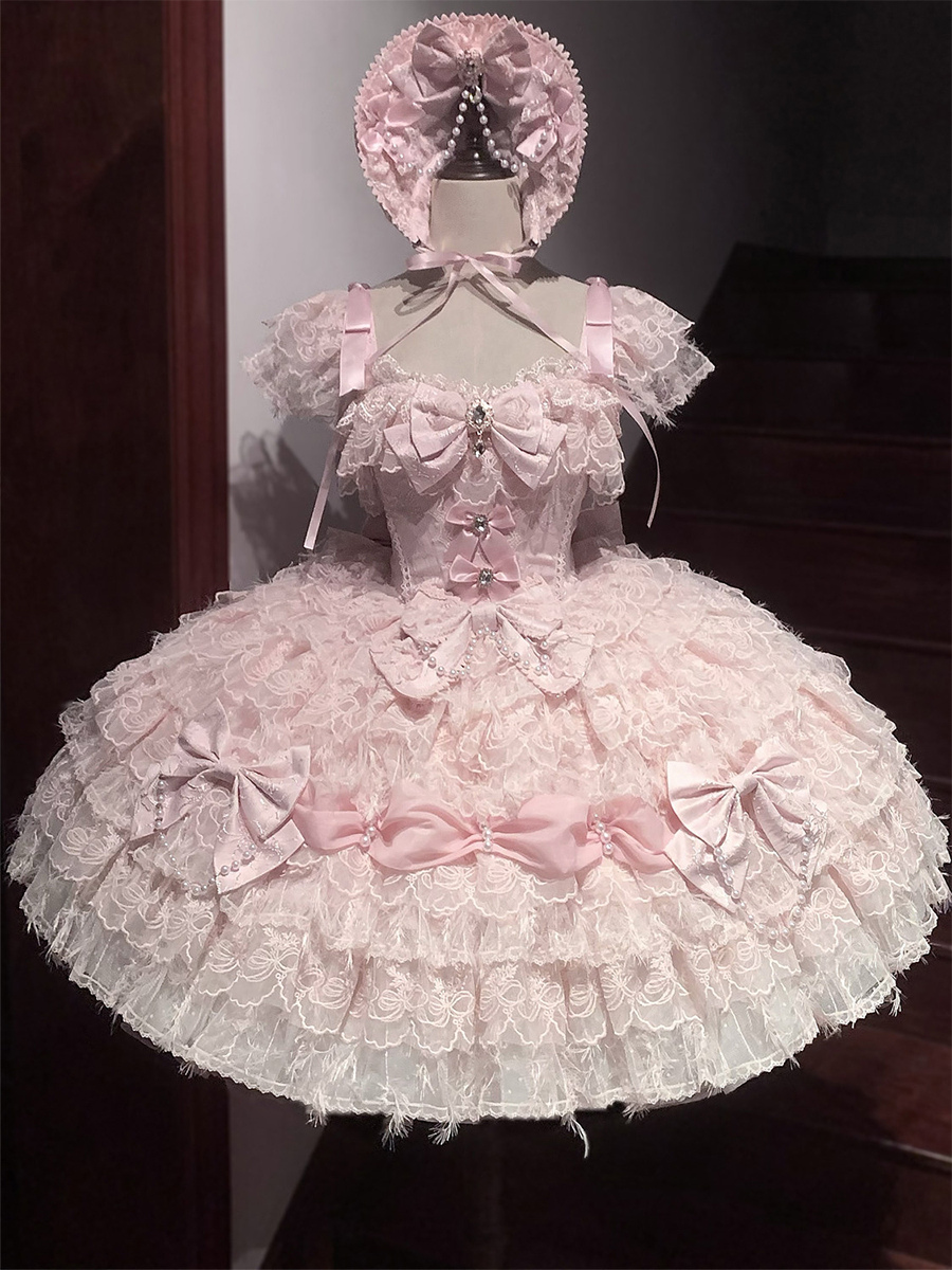 Hime Lolita Kleid mit süßen Schleifen Spitzenrüschen kurzes Lolita-Kleid