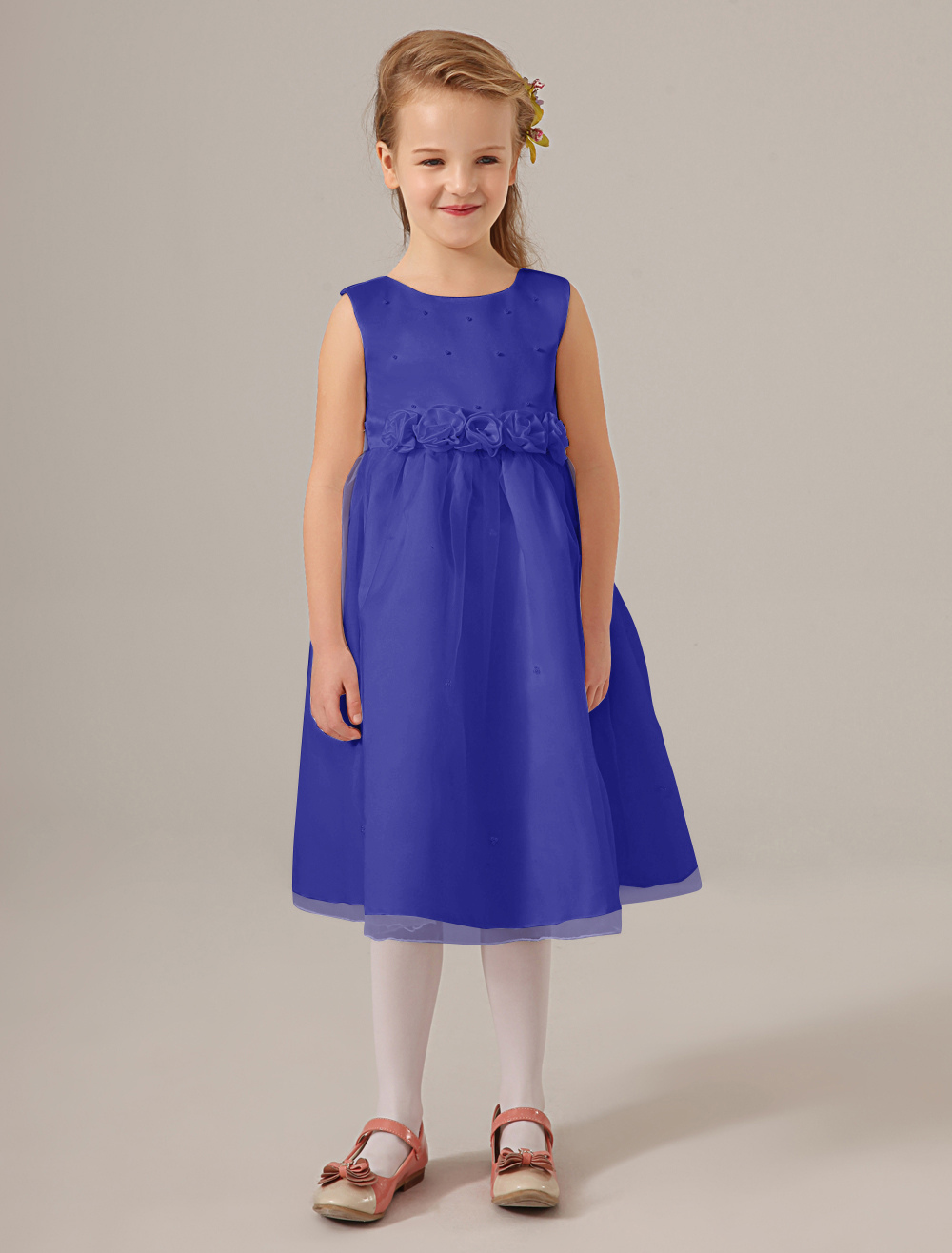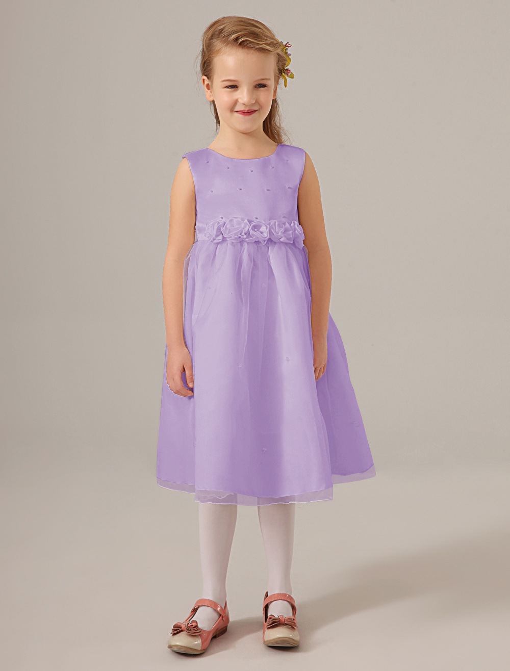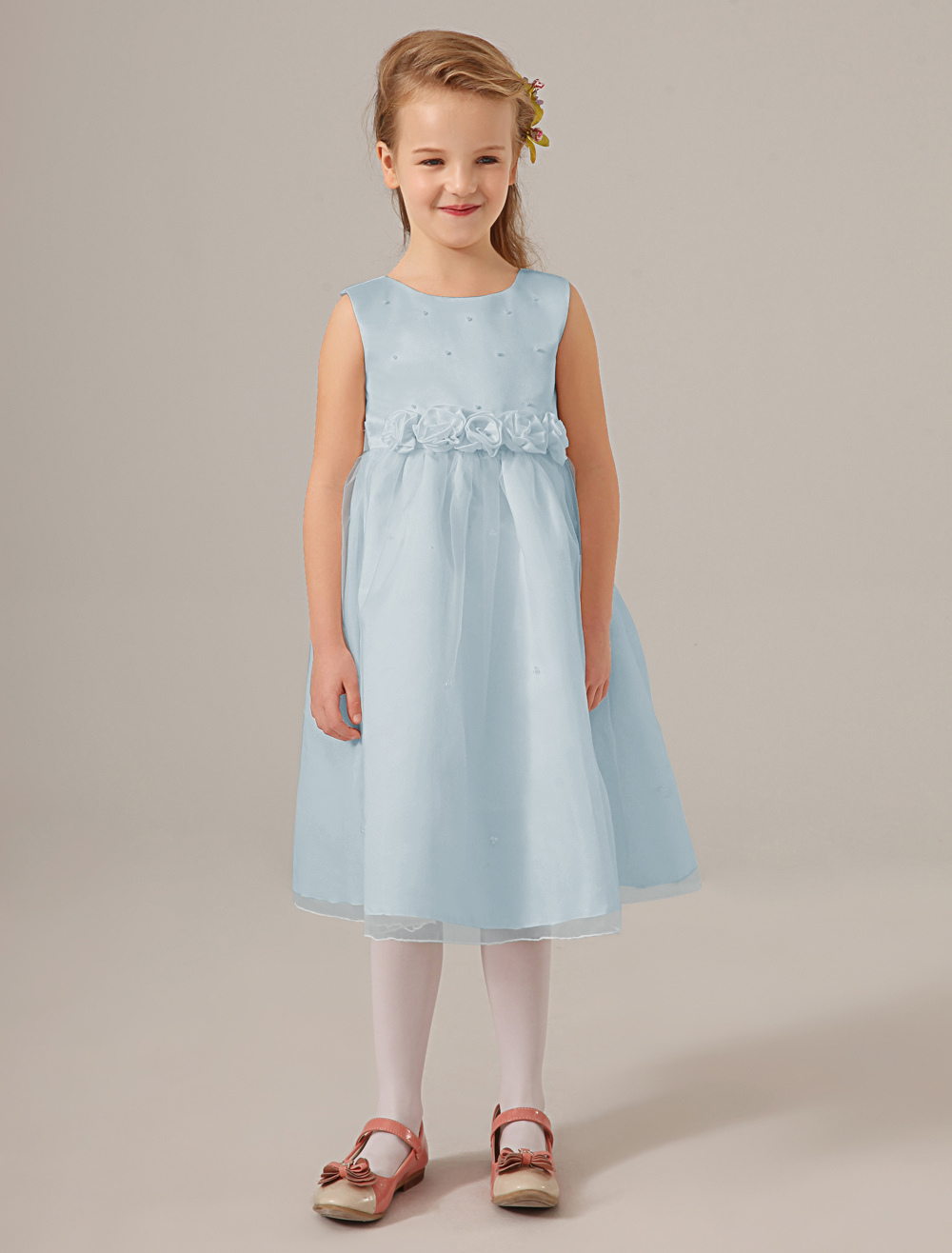 Blumenmädchen Kleider Elfenbeinfarbe Abendkleider für Hochzeit Tüll ärmellos Prinzessin Hochzeit mit Rundkragen kleid blumenmädchen wadenlang