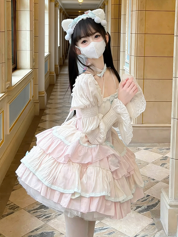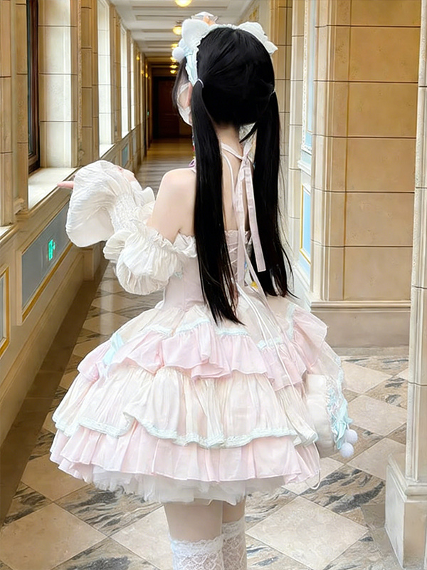 Süßes Lolita-Kleid aus Polyester ärmellos mehrlagig mit Rüschen und Schleife süßes Ballett-Lolita-Jsk