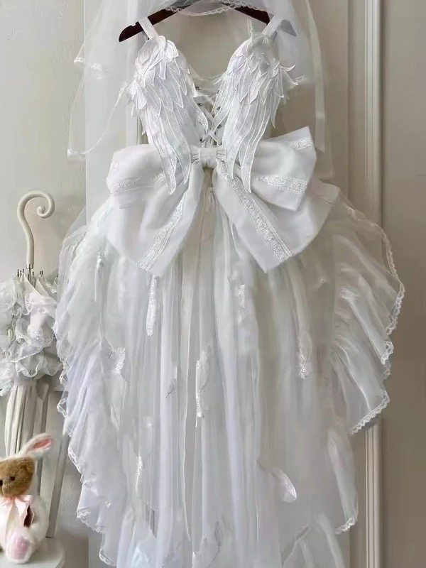 Weißes Hime Lolita Kleid Sweet Swan JSK Lolita Kleid mit Spitzenschleifen