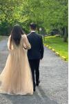 Comentarios de clientes: Champagne Vestidos de baile Manga larga Encaje Tul Una línea Hasta el suelo Vestido formal Vestidos de invitados de boda