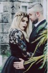 Comentarios de clientes: Vestidos de novia negros góticos A-Line Joya Cuello Manga larga Tul Encaje Hasta el suelo Vestido de novia Personalización gratuita