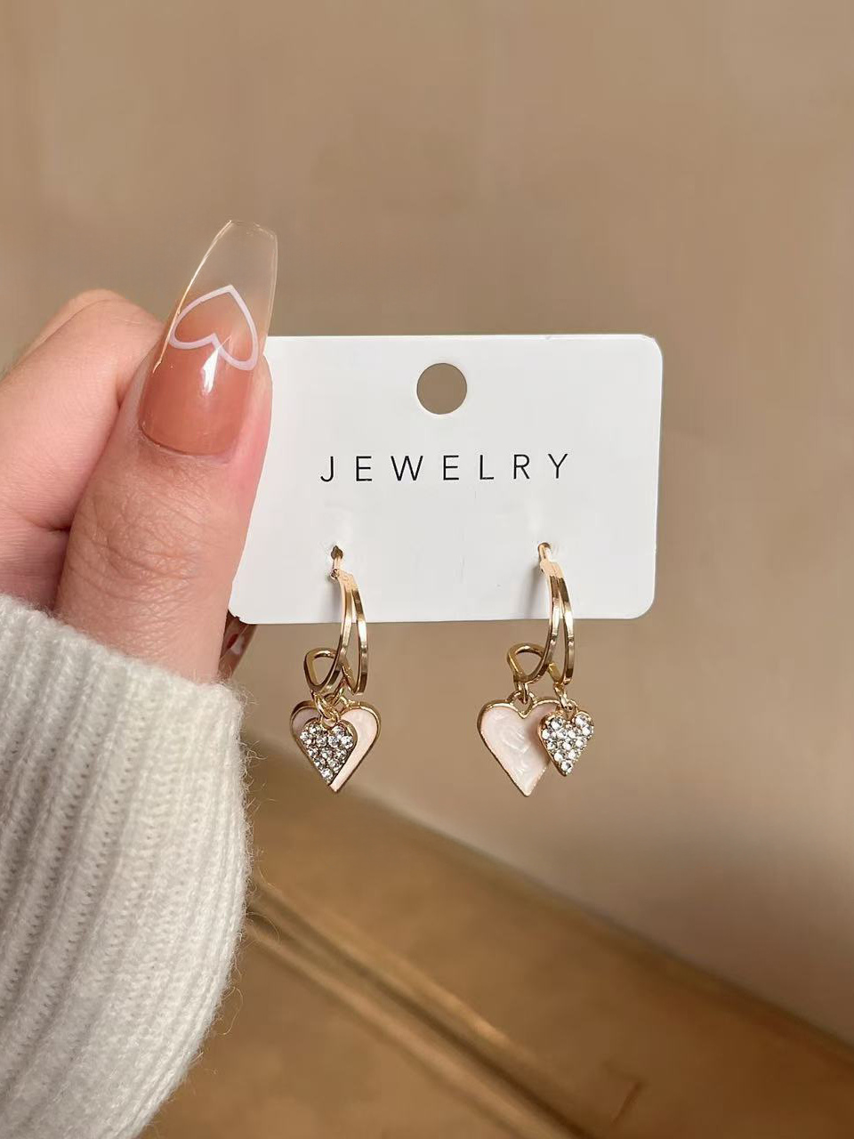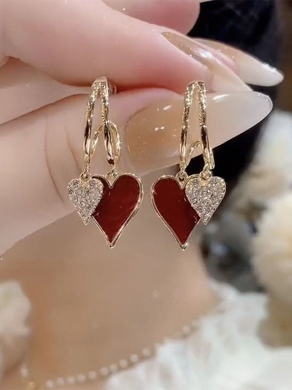 Pendientes colgantes de doble corazón para mujer 2026
