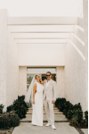 Commentaires de Client: Robe de mariée simple blanche en satin une épaule jupe fendu Robe de mariage