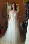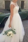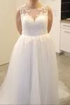 Commentaires de Client: Robe de mariée trapèze ivoire en tulle col rond en dentelle jupe plissée robe de mariage