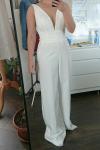 Commentaires de Client: Tenue mariage femme combinaison mariée col V profonde en crêpe élastique