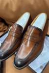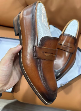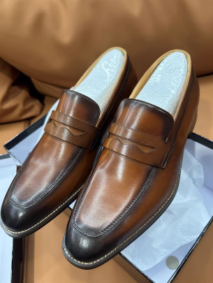 Mocassins pour hommes à bout rond en cuir de vache chaussures de bal de mariage