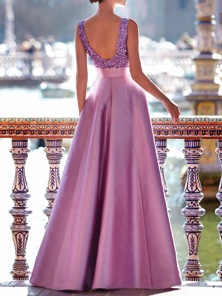 | Fabric | Paillettes, Tissu de satin | Ourlet/Traîne | Longueur plancher |