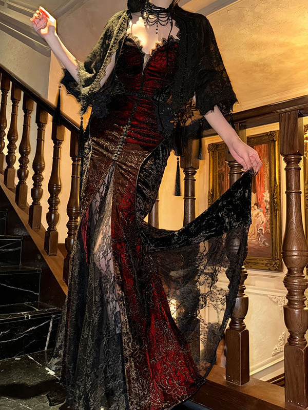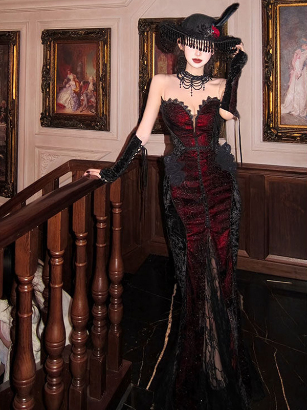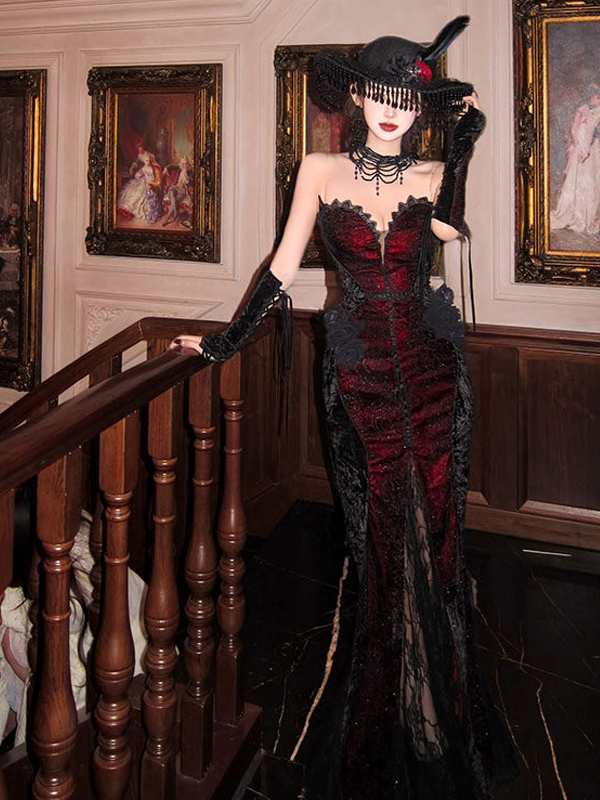 Robe Lolita gothique bustier sirène trompette en dentelle Lolita sans châle