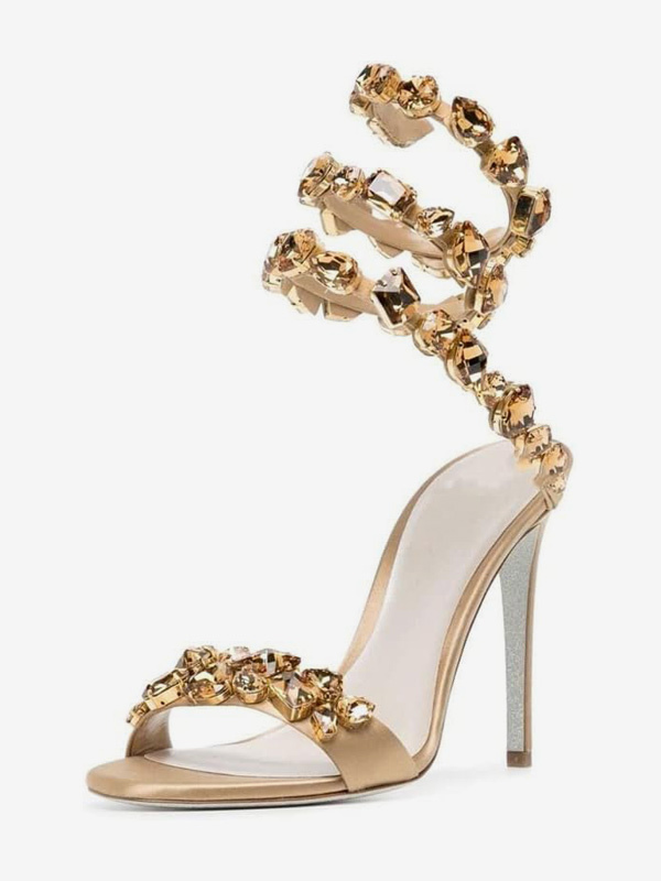 Sandali con tacco alto Scarpe da ballo con strass in punta aperta in raso nero Scarpe da festa da donna