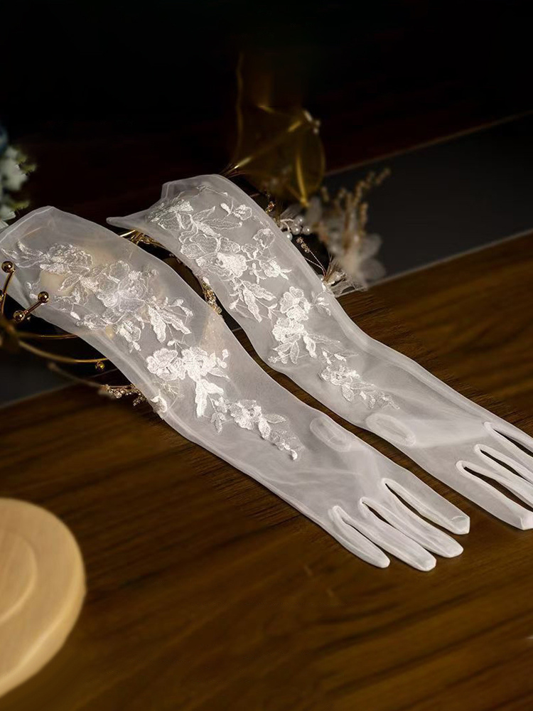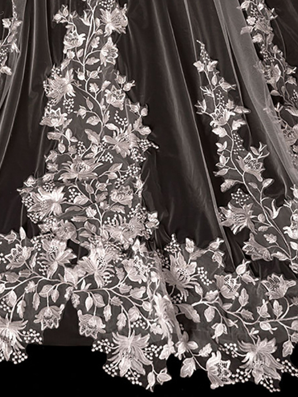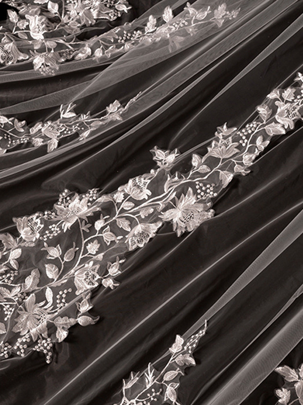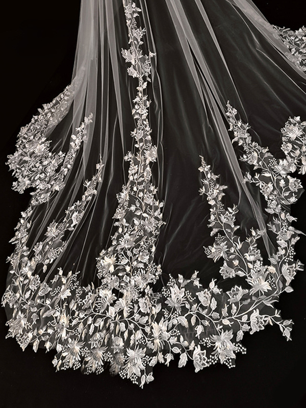 Veli da sposa a due strati in pizzo tulle con applicazioni in pizzo e bordo a cascata