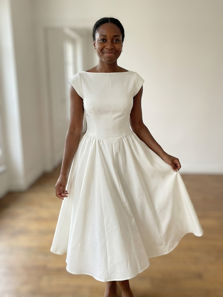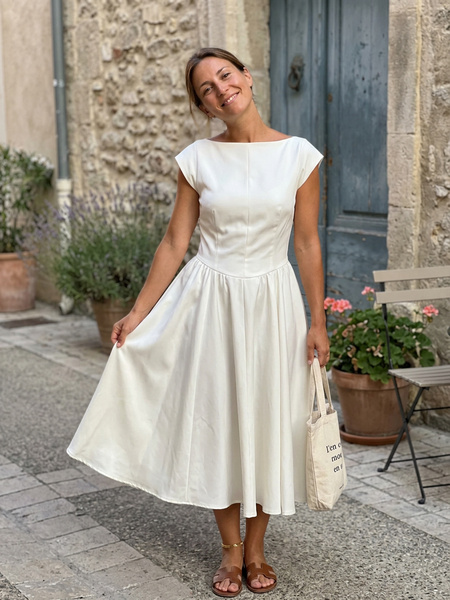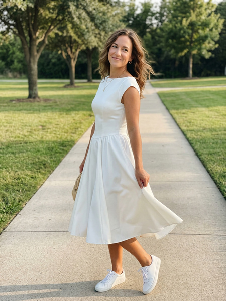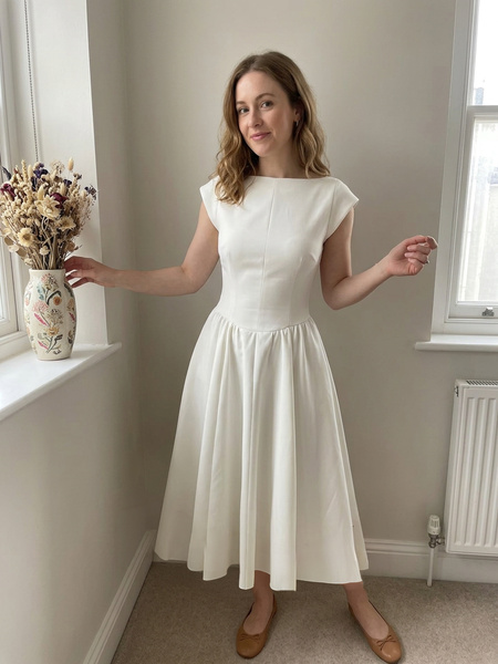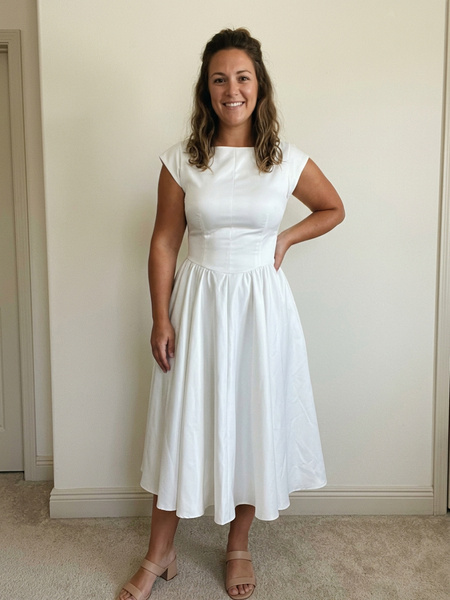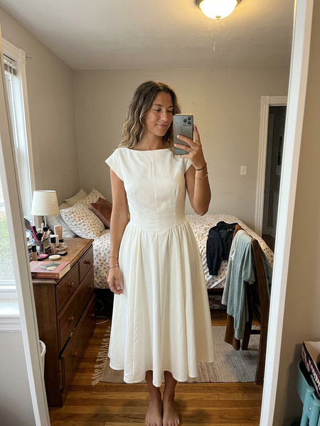 P****yOverall Fit:Ture to sizeThe perfect "blank canvas" dress. You can dress it up with pearls or down with a denim jacket. A bit snug in the chest, so check the chart!04/06/2026