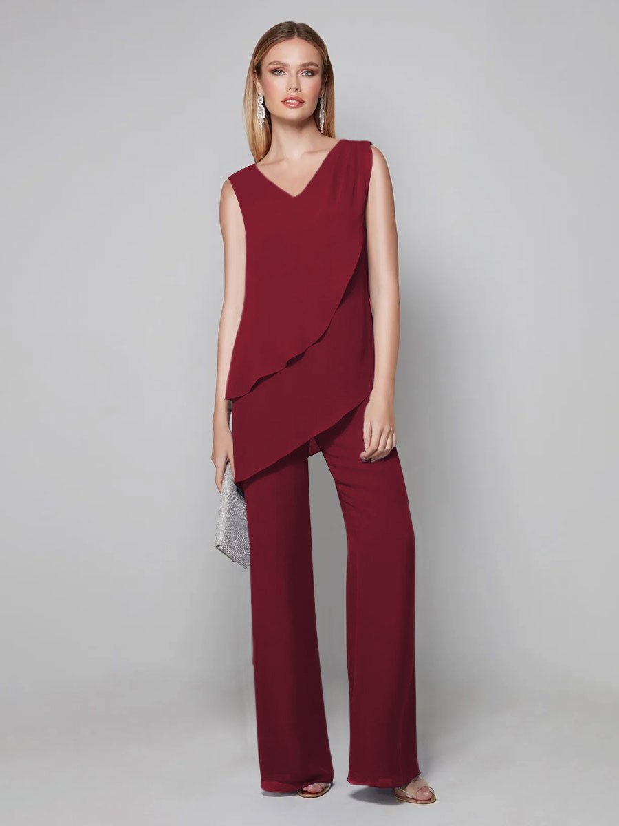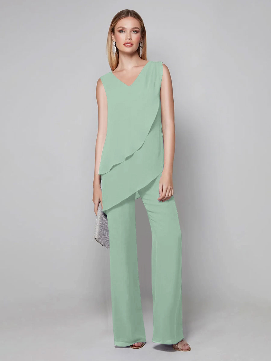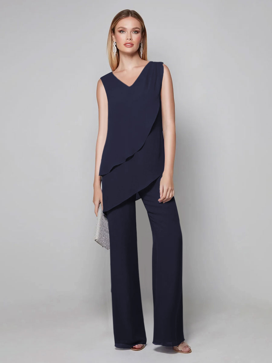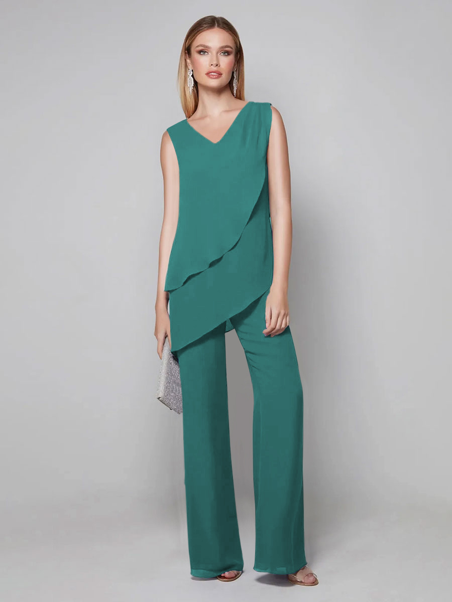 Party Dress For Mother Of The Bride V-Neck Sleeveless Jumpsuit Floor-Length Guest Dresses For Wedding