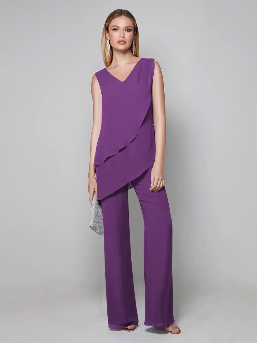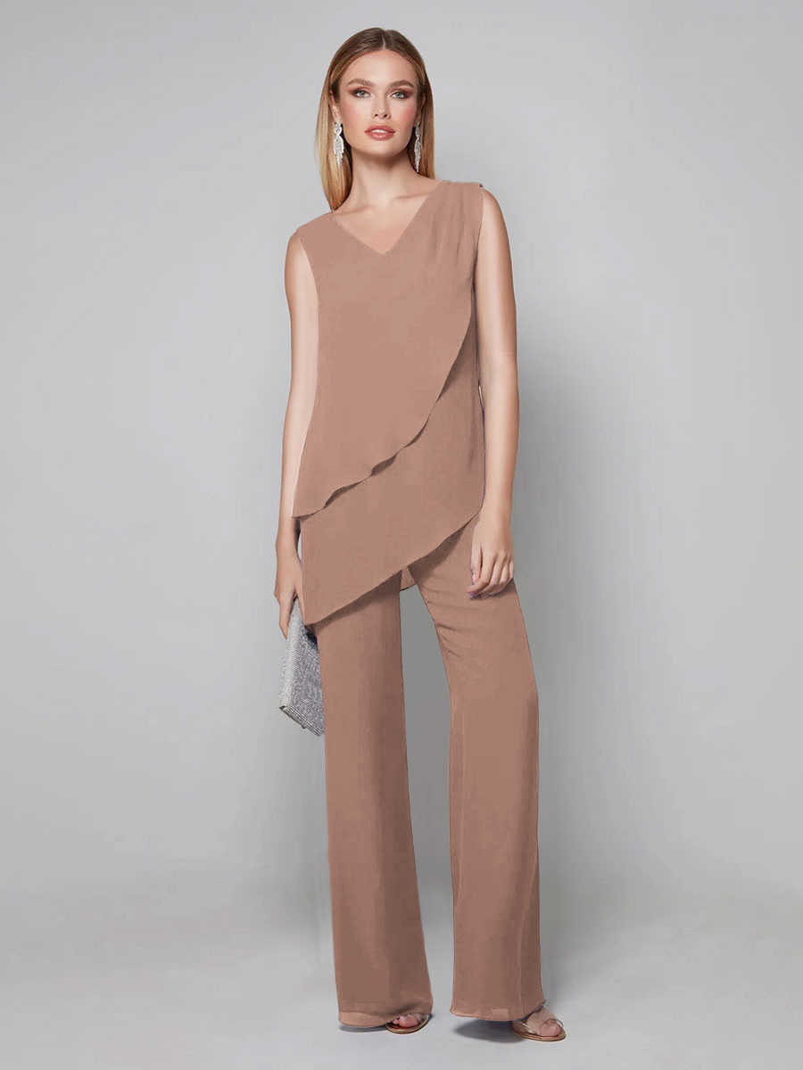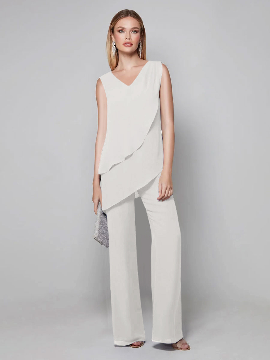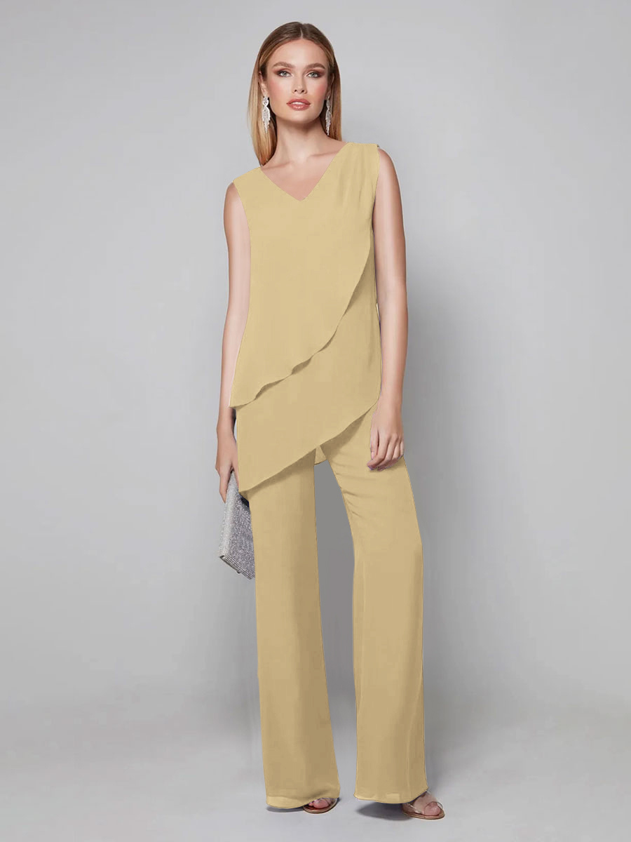 Party Dress For Mother Of The Bride V-Neck Sleeveless Jumpsuit Floor-Length Guest Dresses For Wedding