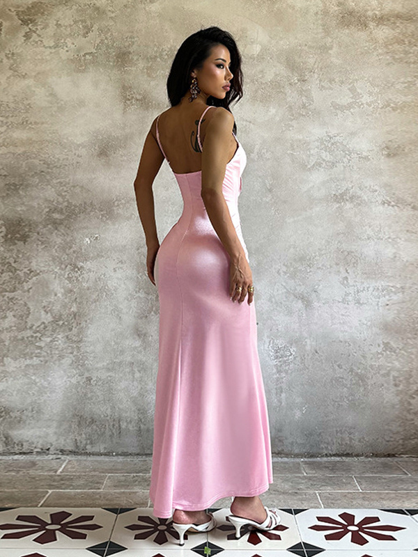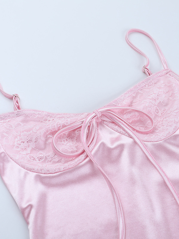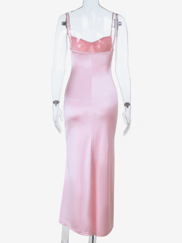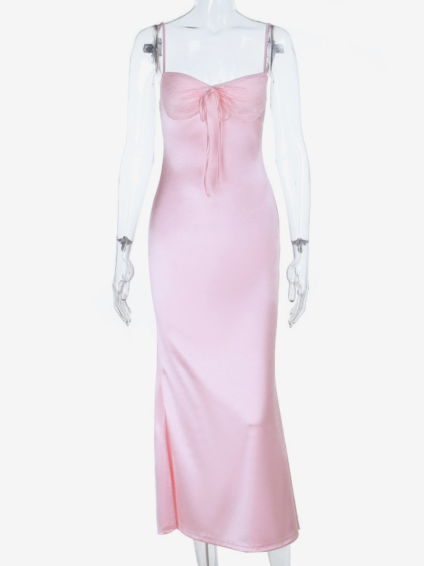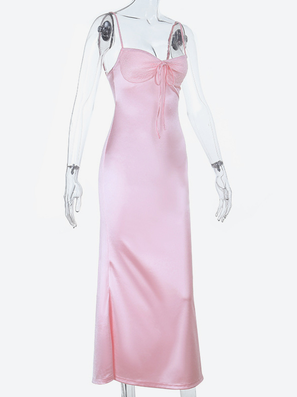 Pastel Pink Coquette Slip Dress For Women - Bow Front Midi Cami Gown - Spring Date Night Outfits 2026