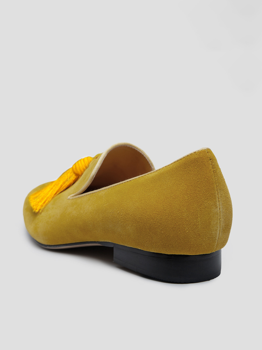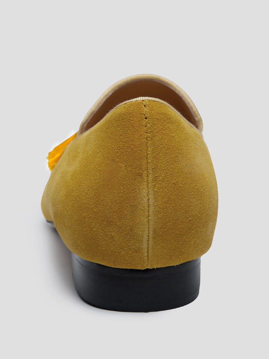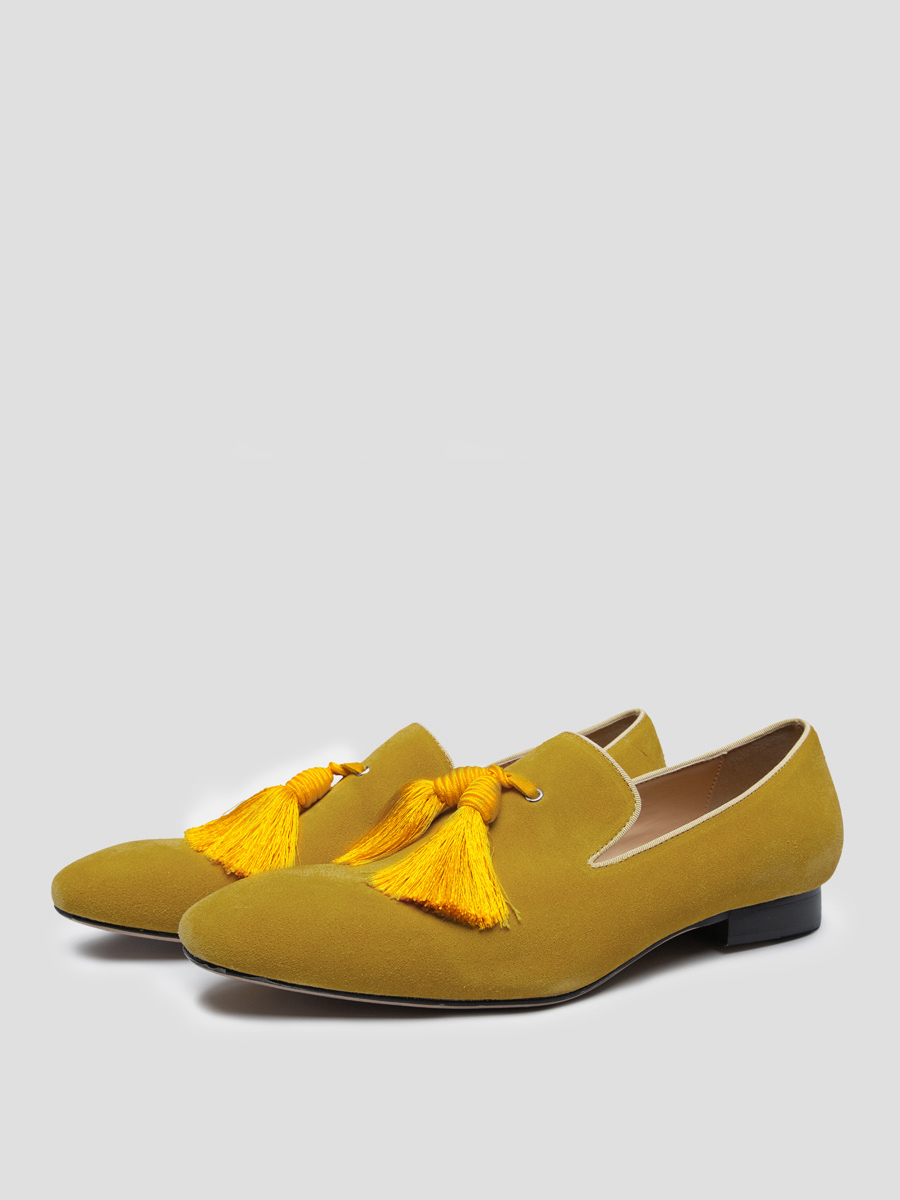 Men's Yellow Tassel Round Toe Suede Loafer Prom Wedding Shoes