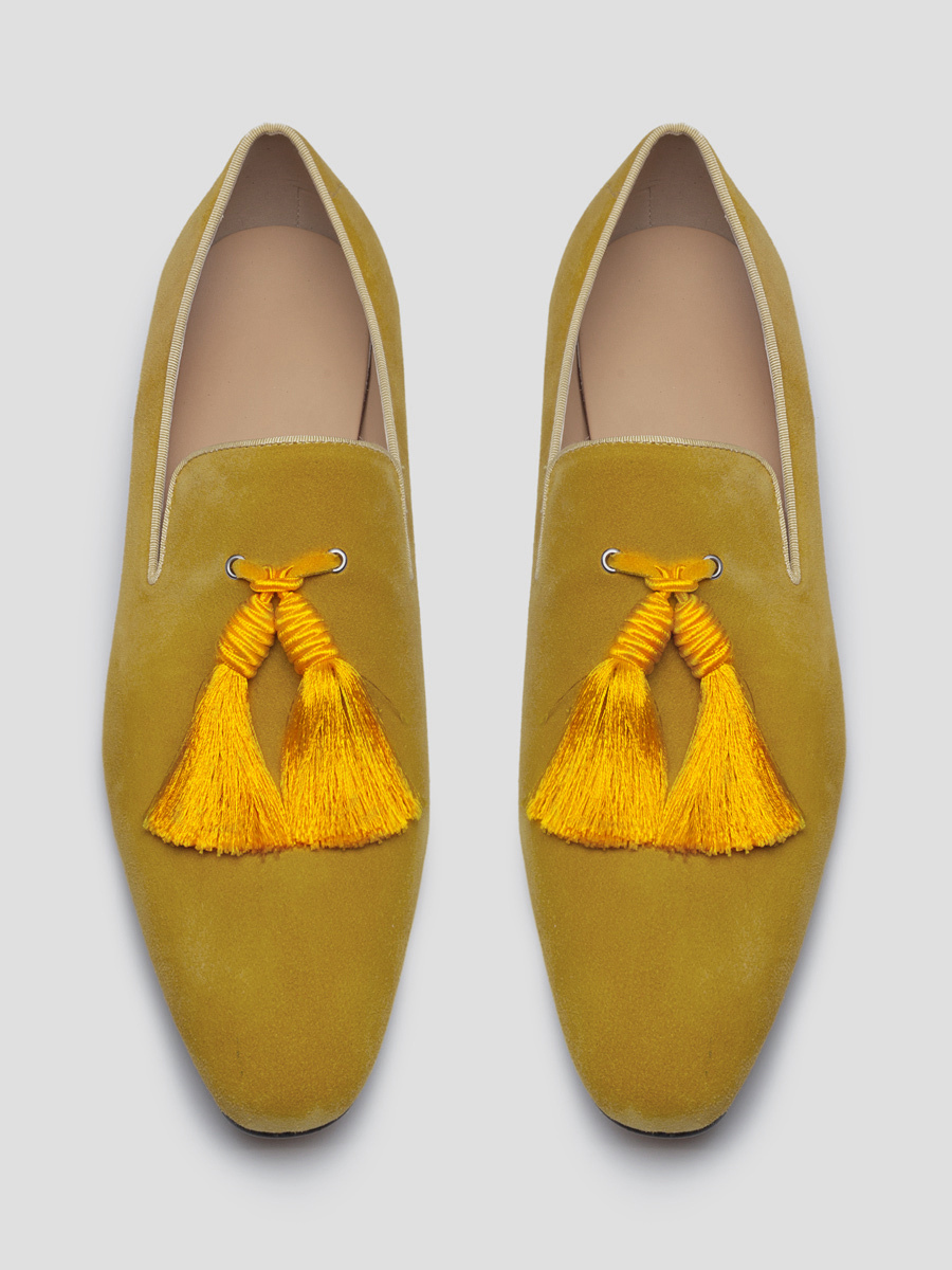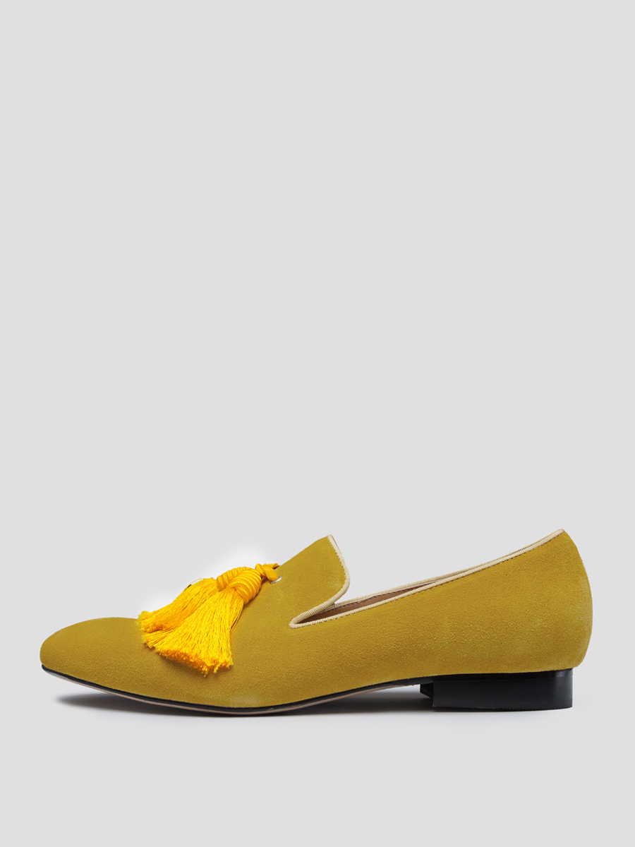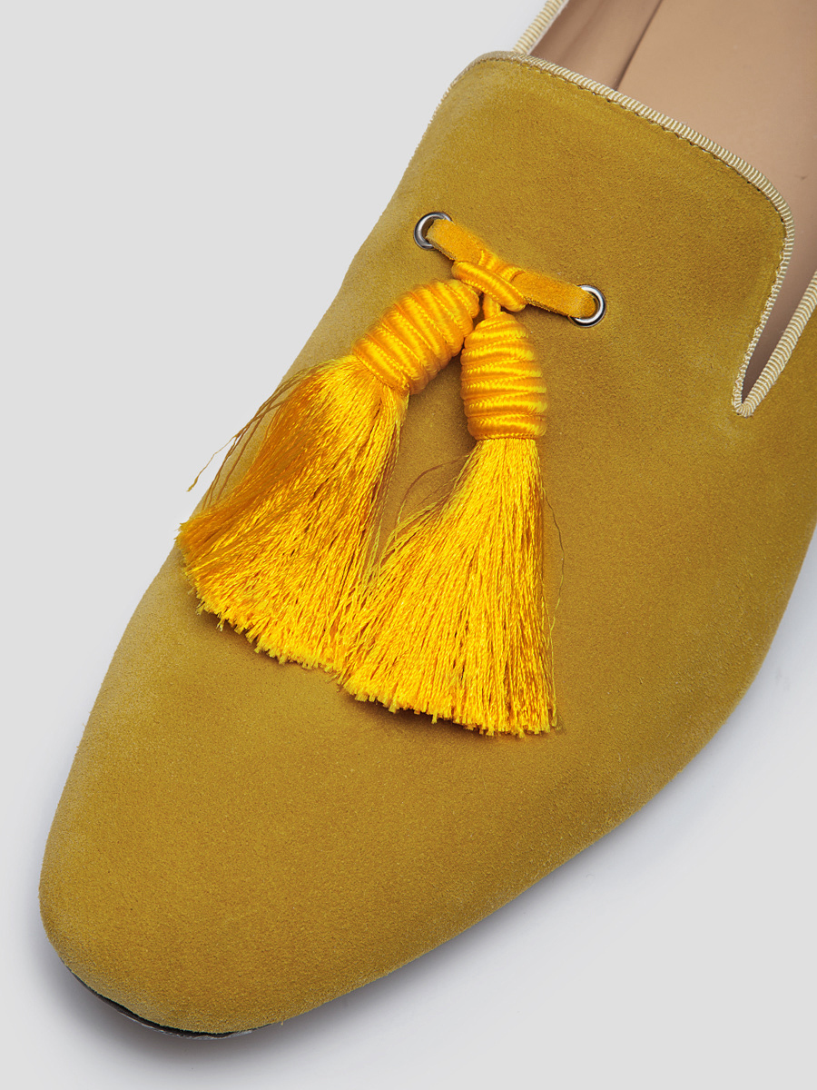 Men's Yellow Tassel Round Toe Suede Loafer Prom Wedding Shoes