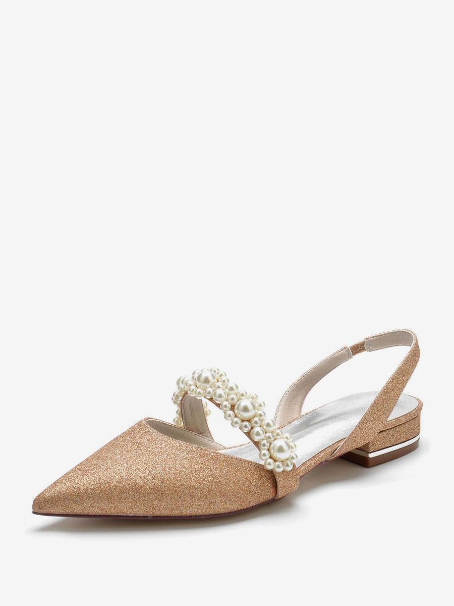 Women's Bridal Shoes Pearls Slingback Flats
